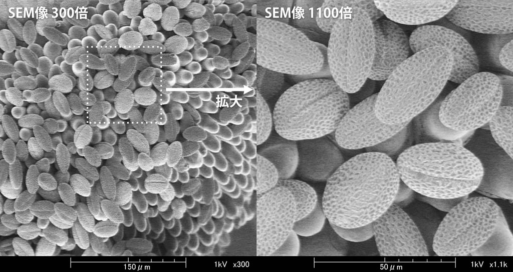 めしべを切り取り、アルミ試料台に載せ、無蒸着のままSEM観察しています。